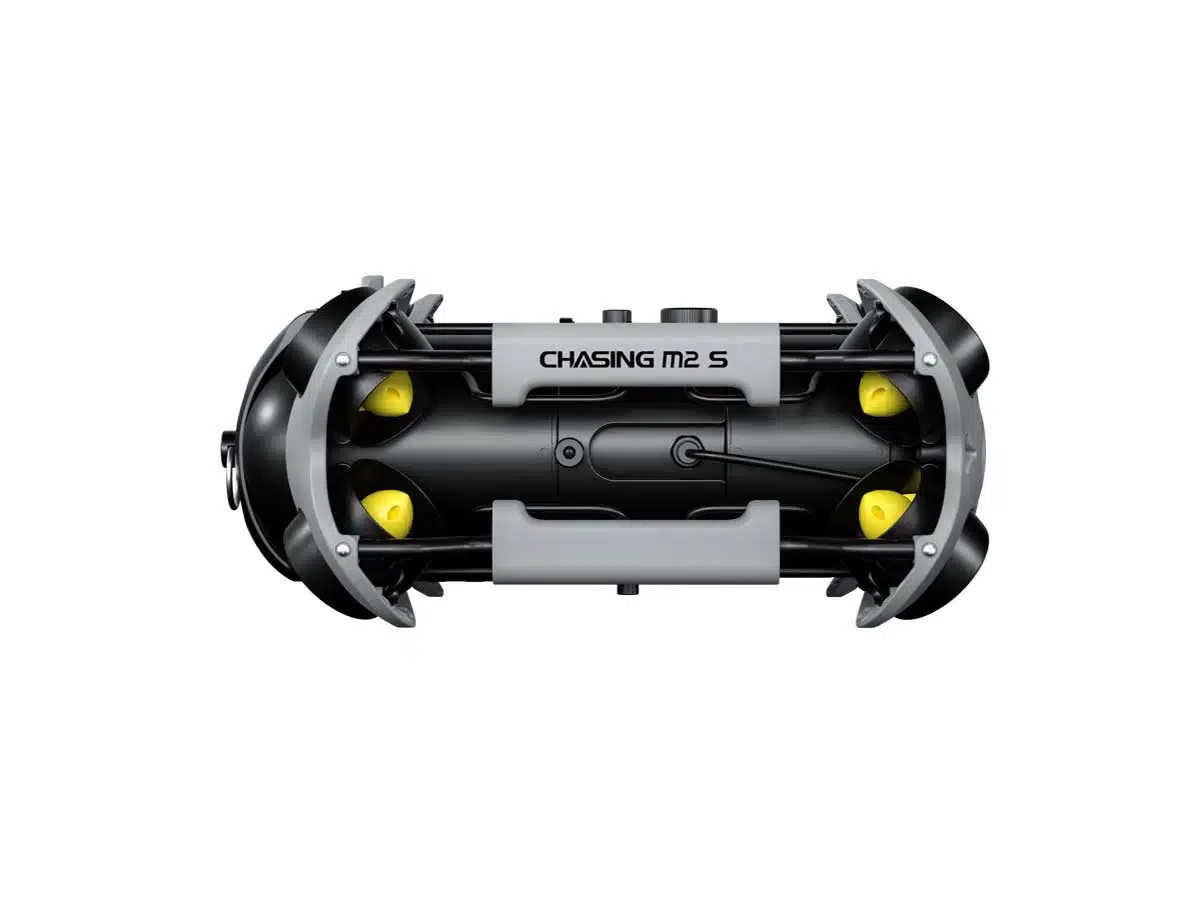 Chasing M2 S:n runkopaino on 4,5 kg, ja sen pääohjaamon ja valaistuksen täysin innovatiivinen vedenpitävä rakenne parantaa entisestään vedenalaisen toiminnan vakautta. Virtaviivainen muotoilu perhossiiven ääriviivojen edessä ja takana parantaa tunnistettavuutta ja suojaa potkuria. CHASING M2 S voi sukeltaa enintään 100 metrin syvyyteen, toimintasäde 200 metriä. 400 metrin laajennettava etäisyys. Mukana tuleva 97,68Wh:n akku voi antaa virtaa jopa 4 tunnin toimintaan. Akkulokero on käyttövalmis, 200Wh vara-akku on myös valinnainen pitkän käytön tarpeisiin.