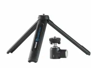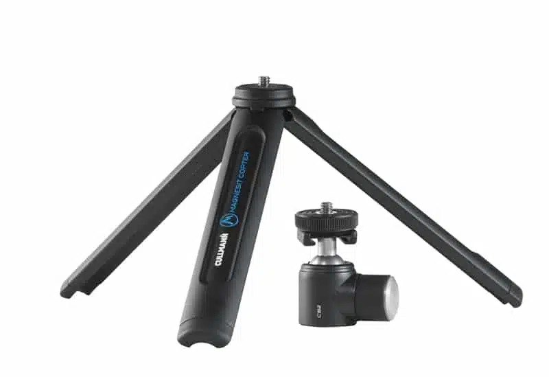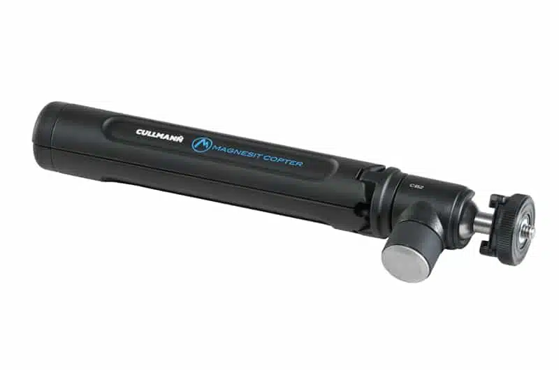 Copteria voi käyttää helposti myös kuvauskahvana, kun jalat ovat sisään taitettuna. Cullmann Magnesit Copter kuljetuspituus on vain 22cm ja se painaa mitättömät 250 grammaa. Silti se on tukeva ja kantaa jopa keskikokoisen DSLR -rungon vaivatta. Magnesit Copter toimitetaan yhdessä irrotettavan kuulapään kanssa. Sekä jalassa, että kuulapäässä on standardi 1/4″ kierre. Kuulapäässä on myös salamakenkä, johon voidaan kiinnittää sekä salama, tai vaikkapa mikrofoni jossa on ns. hotshoe -kiinnitys.