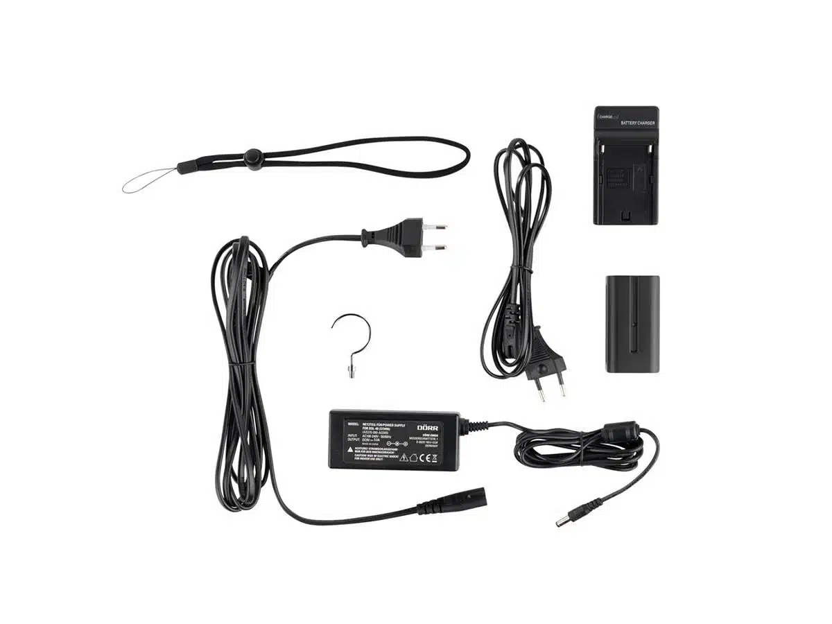 - Toimii sekä akulla että verkkovirralla (molemmat mukana)