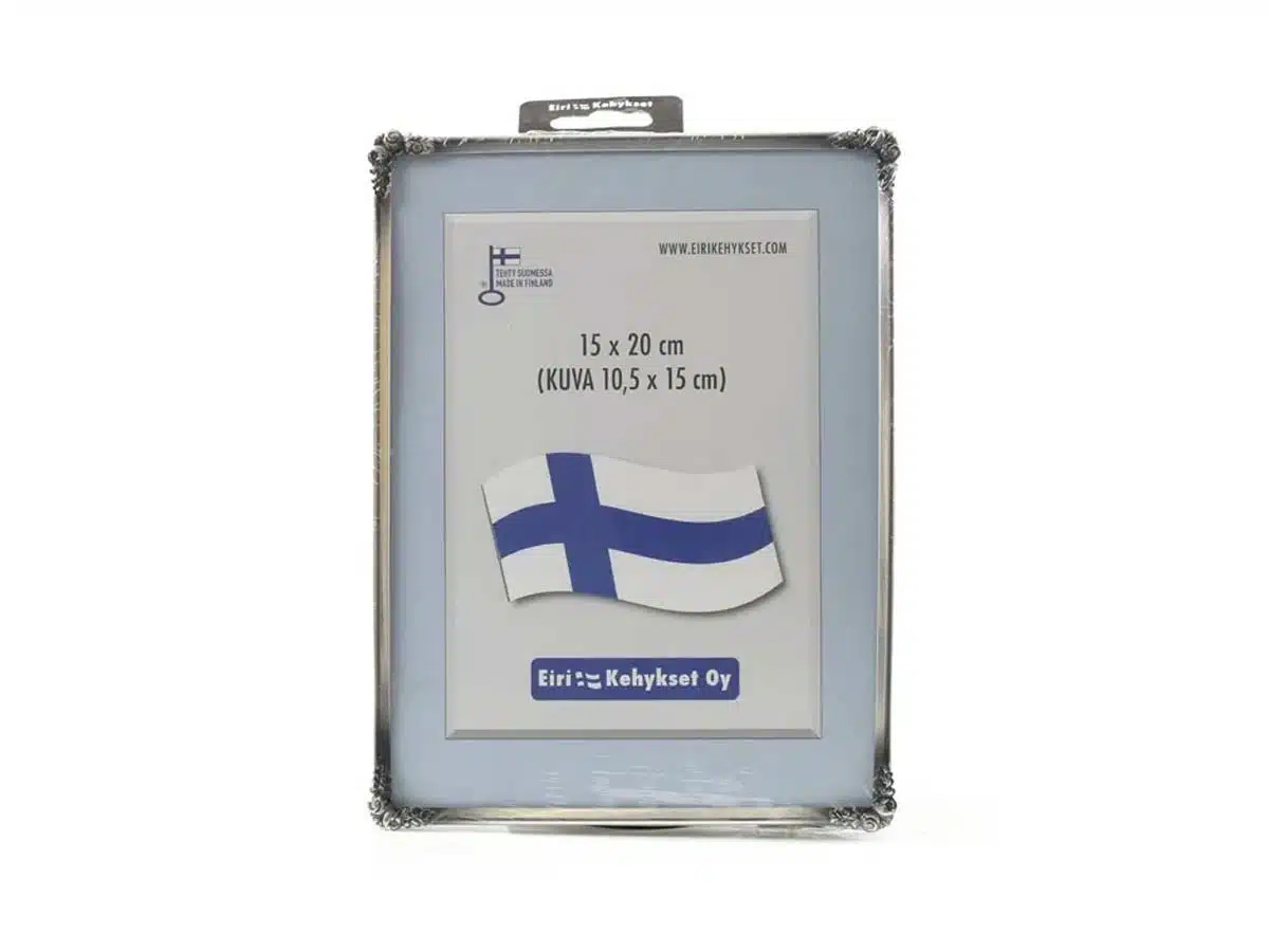 Aito ja alkuperäinen Eiri-valokuvakehys. Suomalainen laatutuote. Ruusukoristeinen hopea. Kiiltävää terästä,patinoitu. Kehysprofiilin leveys 5 mm ja korkeus 8 mm. Tukevalla pöytänojalla( ei A4) ja ripustuslenkeillä. Valokuva on helppo asettaa ja vaihtaa. Kehyksen takana on pöytätuki ( ei A4) ja ripustuslenkit. Kehyksen koko on sama kuin valokuvan koko. Profiilin leveys 5mm ja paksuus 8mm. Pinta on niklattu. ruusu on patinoitu mustalla. 2mm lasi. Tukeva tausta pujotetaan paikoilleen ja panta puristaa sen ja kuvan tiiviisti paikoilleen. Muista asentaa panta kehyksen alareunaan niin se ei vahingossa irtoa. Lopputuloksesta tulee usein parempi jos käytät paspista ei pahvia jossa on aukko kuvaa varten. Käytä silloin valokuvaa isompaa kehystä jotta kuvalle tulee esimerkiksi 4 cm reunukset.