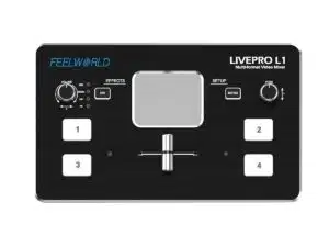 Feelworld Livepro L1 on moniformaattinen videomikseri neljällä HDMI-tulolla monikameratuotantoon ja reaaliaikaiseen suoratoistoon.