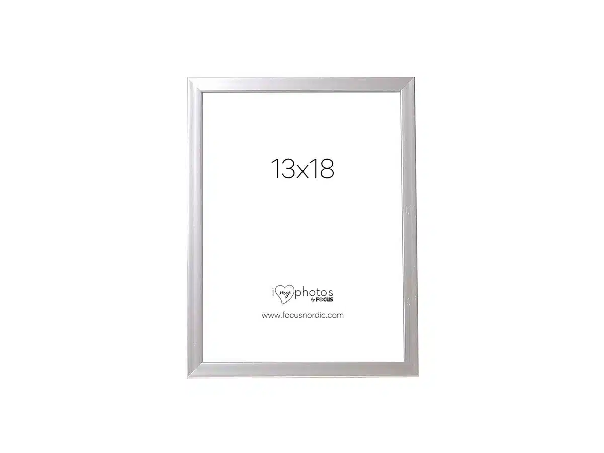 Hopeat kehykset ohuella profiililla. Kehykset valmistetaan muovista. Kehyksessä on aitoa lasia, joka korostaa valokuviesi parhaita puolia. Siinä on takatuki, jonka avulla voit myös asettaa kehyksen hyllylle tai pöydälle. Kehyksen profiilin syvyys on 13 mm ja leveys 13 mm