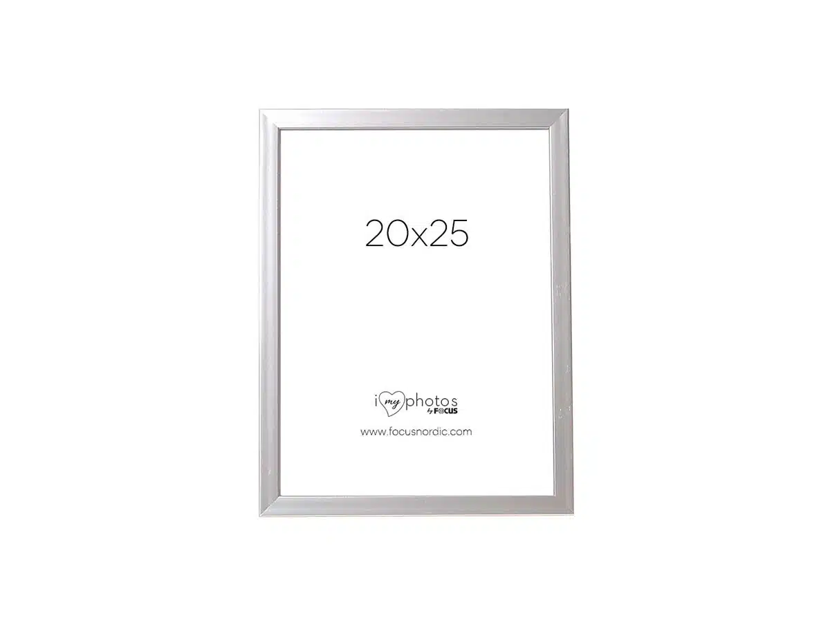 Hopeat kehykset ohuella profiililla. Kehykset valmistetaan muovista. Kehyksessä on aitoa lasia, joka korostaa valokuviesi parhaita puolia. Siinä on takatuki, jonka avulla voit myös asettaa kehyksen hyllylle tai pöydälle. Kehyksen profiilin syvyys on 13 mm ja leveys 13 mm. Kehyksessä olevan kuvan koko on 20×25 cm.