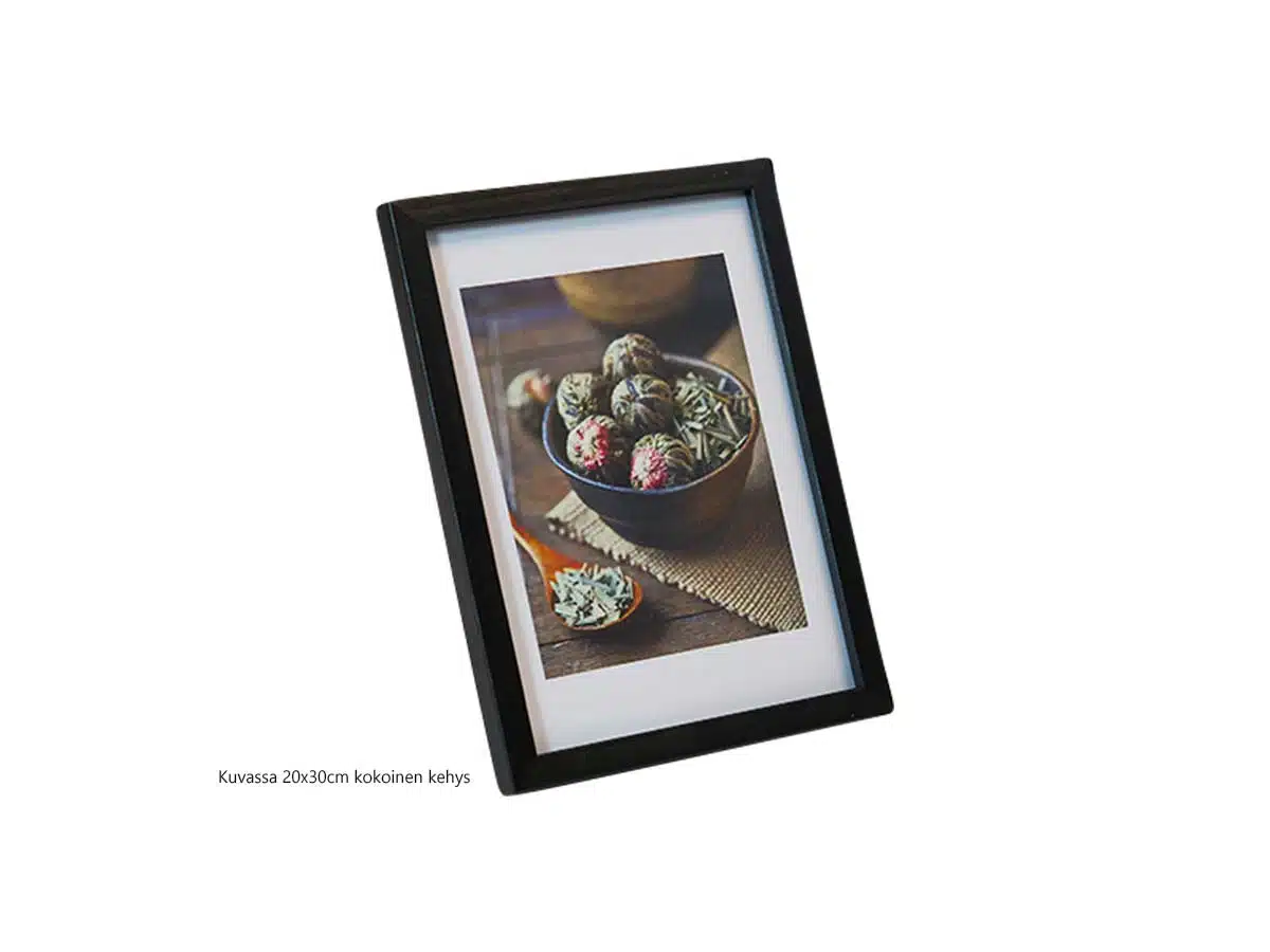 Mustat, puiset kehykset klassisella tyylillä. Kehyksissä on ohut profiili. Kehyksessä on aitoa lasia, joka korostaa valokuviesi parhaita puolia. Siinä on takatuki, jonka avulla voit myös asettaa kehyksen hyllylle tai pöydälle. Kehyksen profiilin syvyys on 13 mm ja leveys 11 mm. Kehyksessä olevan kuvan koko on 10×10 cm.