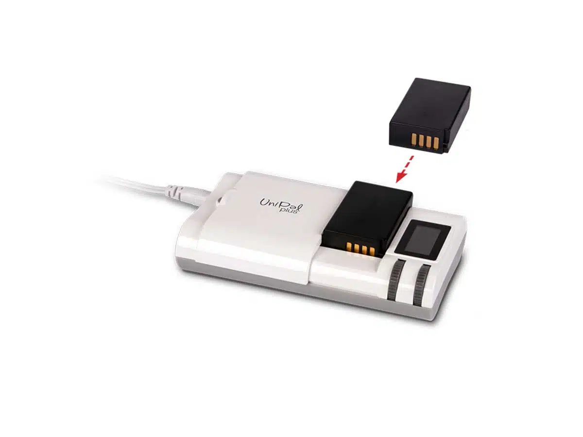 Tyylikäs ja päivitetty Hähnel Powerstation Unipal Plus yleislaturi LCD-näytöllä. Pakkauksessa mukana verkkovirta-adapteri sekä vaihdettavat EU & UK -pistokkeet. Laturia voidaan siis käyttää koko EU-alueella ilman erikseen ostettavia adaptereita.