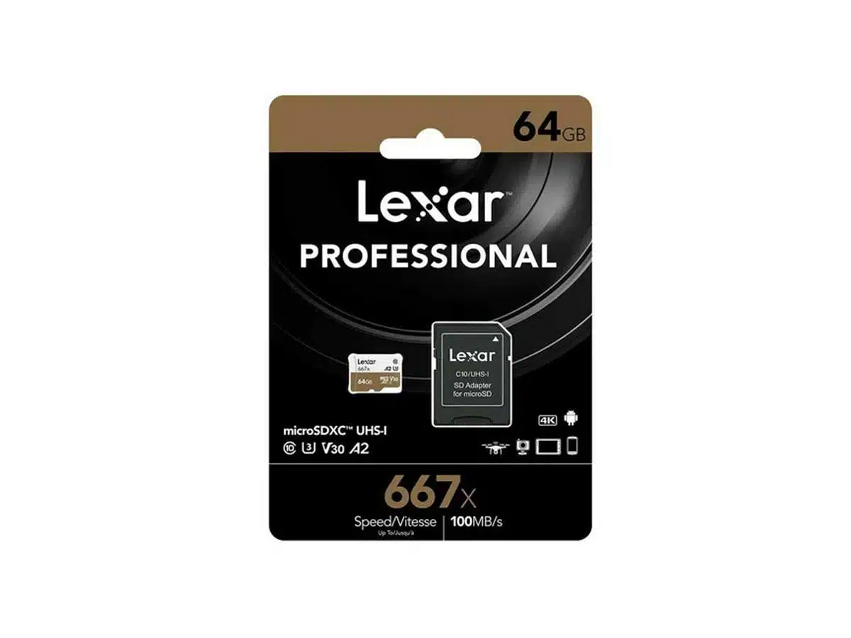 Lexar 64gB Professional 667x MicroSDHC (100MB/s, UHS-I)