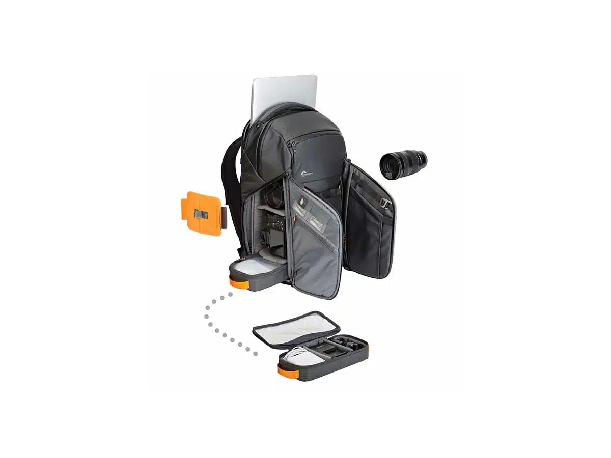 Lisäominaisuuksina löytyvät puhelintasku olkahihnassa ja 15” kannettavalle tietokoneelle suunniteltu sisätasku. Mukana tulee myös Gearbox, pieni erillinen laukku akuille, latureille, kaapeleille, muistikorteille ja muille pienille tarvikkeille.