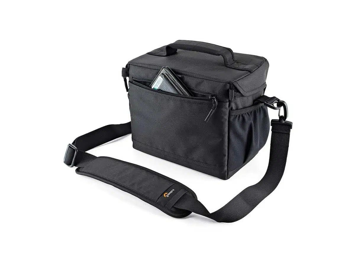 Lowepro Nova 180 AW II -kameralaukku on kehittynyt edelleen suojellakseen uusinta kameratekniikkaa. Tämän ajattoman kameran olkalaukun uusin painos säilyttää ensiluokkaisen suojan erilaisilta sääolosuhteilta. Laukkuun mahtuu Pro DSLR-kamera, jossa on 24-105 mm: n objektiivi, sekä 3-4 lisäobjektiivia ja salama. Laukun alaosaan kiinni ommeltu All-Weather Protection sääsuoja ja vedenpitävät vetoketjut pitää laitteistosi suojassa. Laukussa myös paljon taskuja ja tiloja erilaisille pientarvikkeille kuten muistikortit, suotimet, akut yms… Katso myös hieman pienempi malli Lowepro Nova 160 AW II.