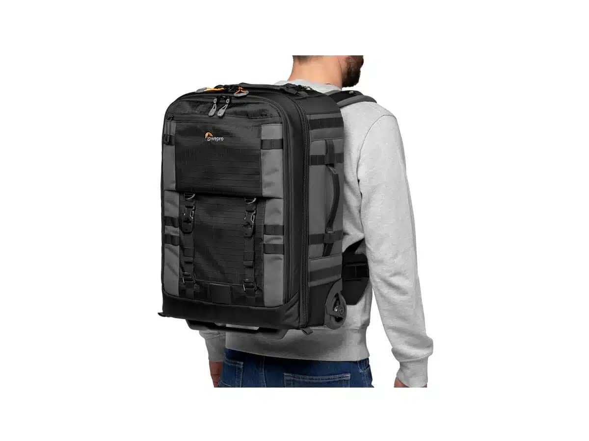 Kestävillä pyörillä ja teleskooppikahvalla varustettu laukku on kätevä kuljettaa lentokentillä, junissa ja busseissa, hotelleissa yms. Maastoon suunnatessa se muuntautuu nopeasti mukavaksi rinkaksi, jolla kuvauskaluston kuljettaminen etäisellekin kuvauskohteelle on helppoa.