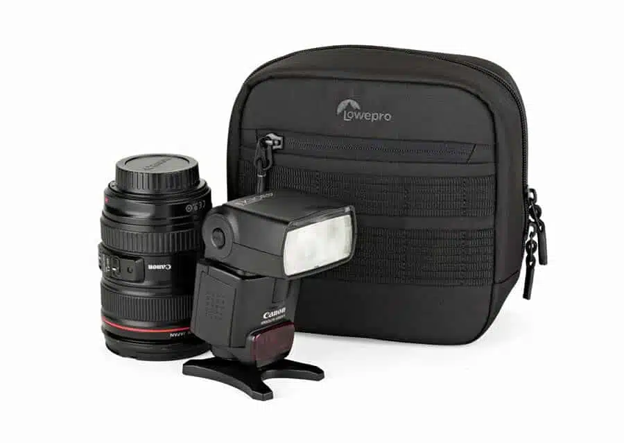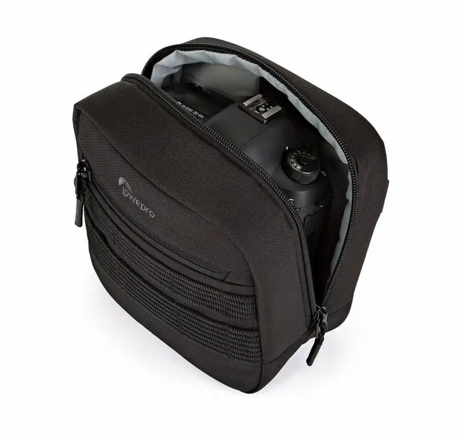 - Edessä oleva vetoketjullinen tasku tarjoaa kätevän säilytystilan linssinsuojille, runkotulpille ja muille lisävarusteille