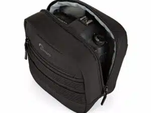 - Pussin yläosassa oleva kaapeliportti mahdollistaa lisävarustejohdon kuljettamisen laukusta ulkoiseen laitteeseen