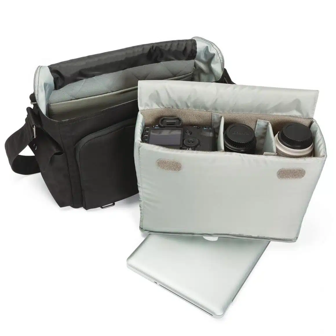 Lowepro Urban Reporter 250 järjestelmäkameralaukkuun mahtuu jopa ammattitason järjestelmäkamera 70-200 F/2,8 –objektiivilla. Lisäksi siinä on tilaa lisäobjektiiveille, salamalle sekä tarvikkeille ja kannettavalle tietokoneelle. Laukun pehmustettu sisäosa on kokonaan irrotettavissa, joten laukku sopii tarvittaessa hyvin myös muuhun käyttöön.