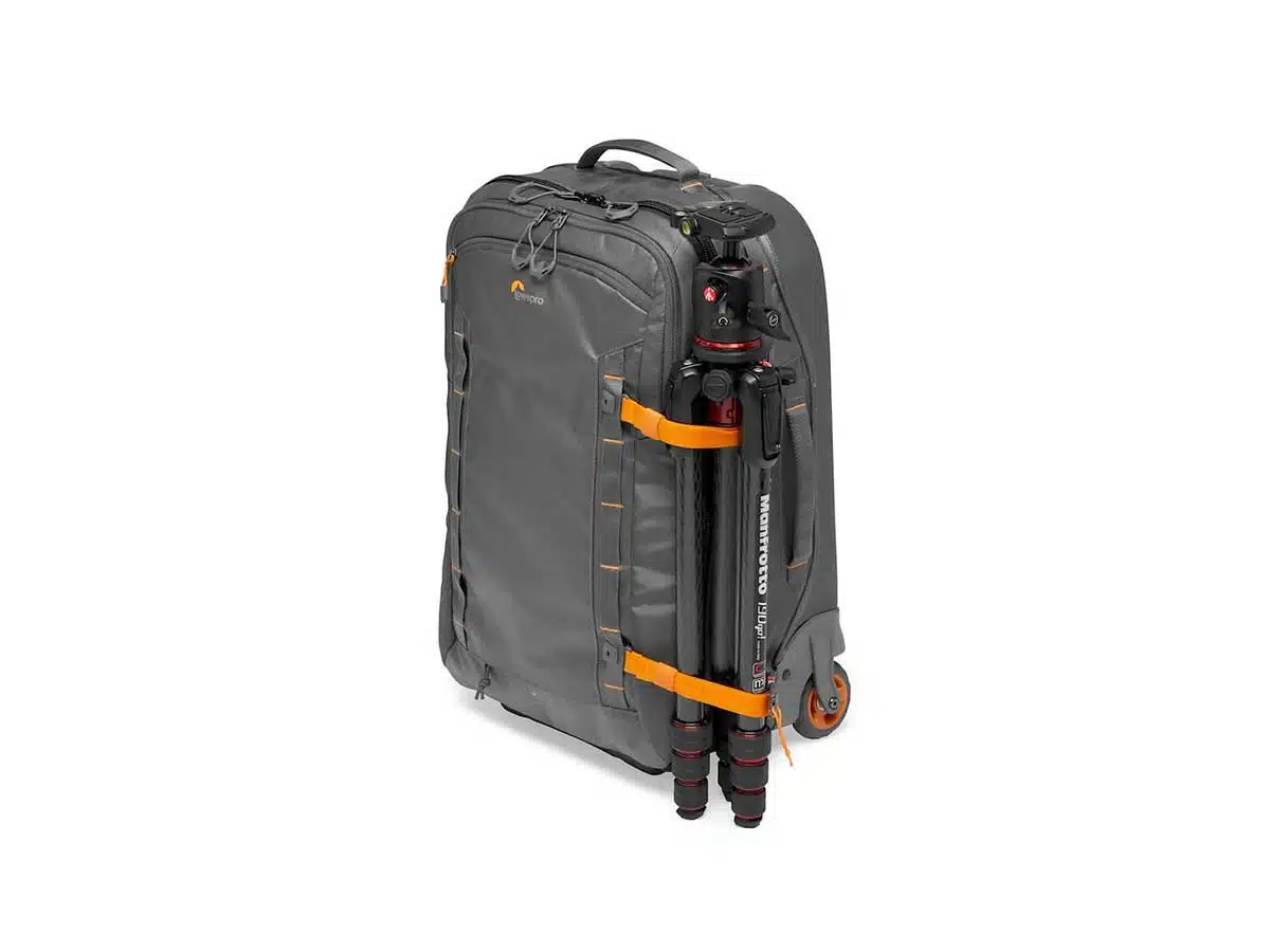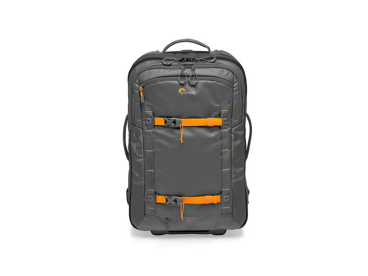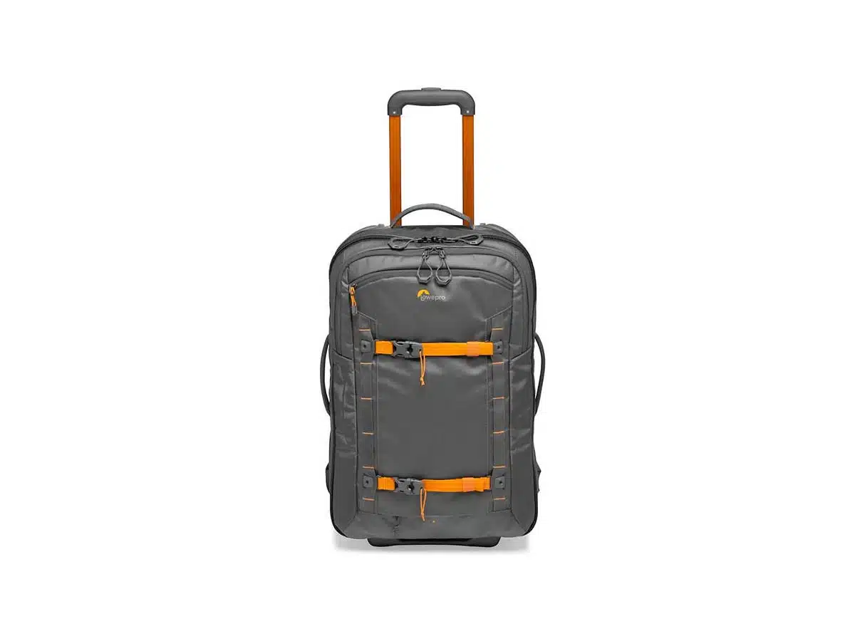 Lowepro Whistler RL400AW II on käsimatkatavaraksi hyväksytty vetolaukku johon mahtuu 2 peilitöntä / DSLR-kameraa, jossa 200mm: n objektiivi kytkettynä, sekä 5-6 Objektiivia, 15″ kannettavan tietokonee ja henkilökohtaiset tavarat.