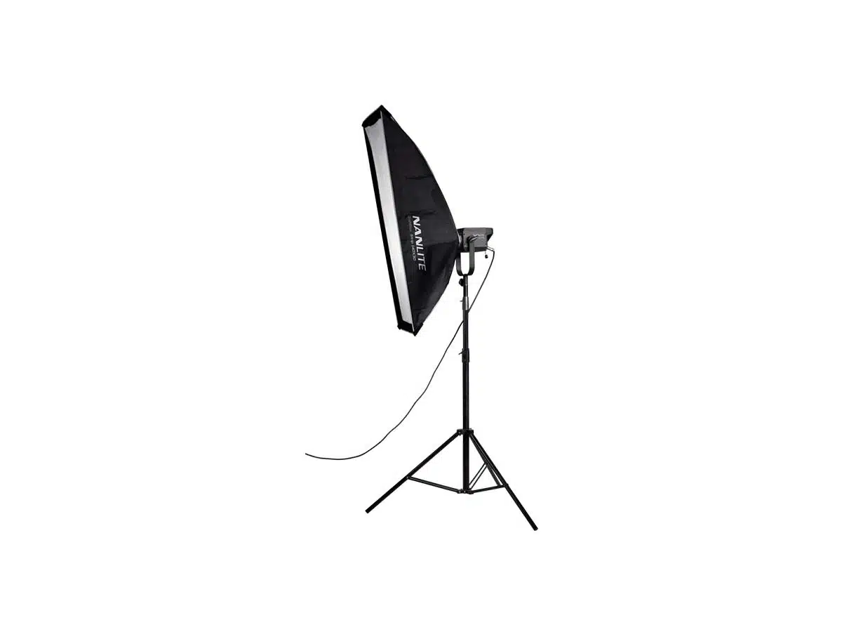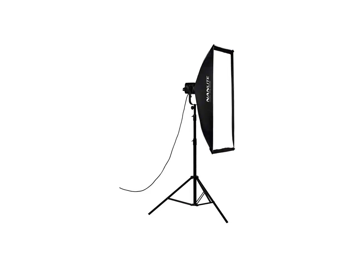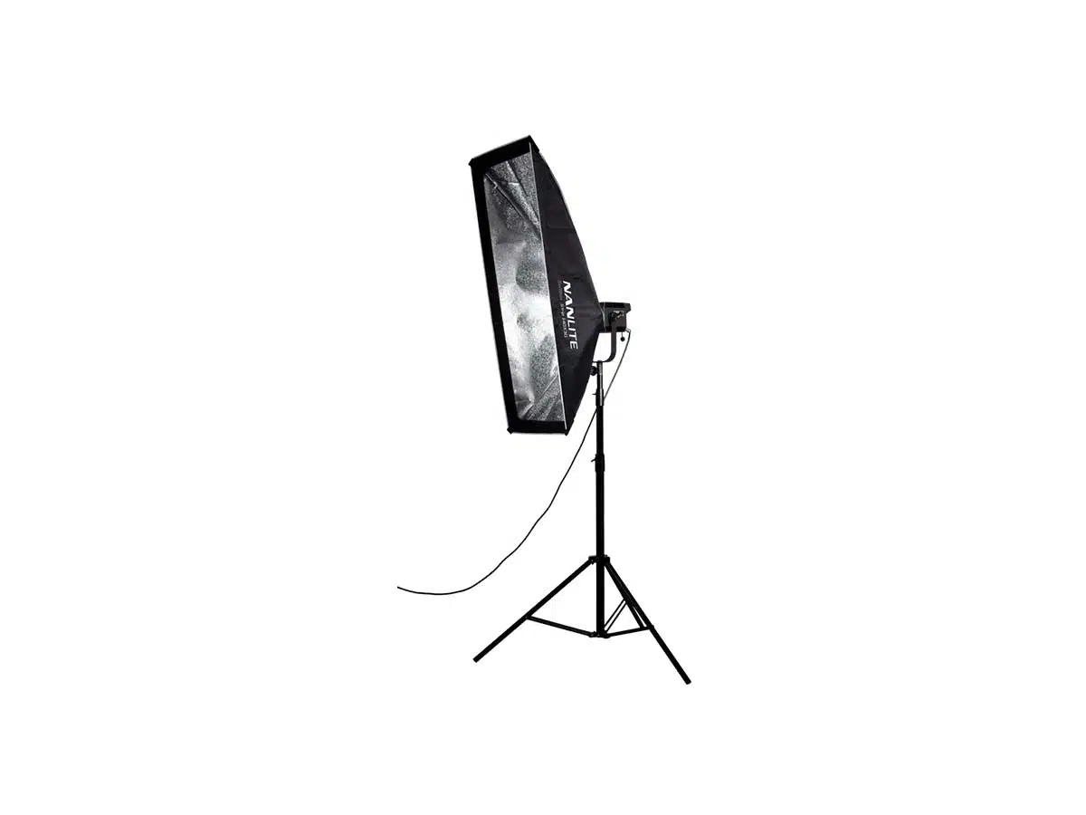 Epäsymmetrinen Stripbank Softbox Bowens Mountilla (45x110cm), huomattavasti strobovalon tai kuvausvalon valoa pehmentävä strip-tyylinen softboksi.
