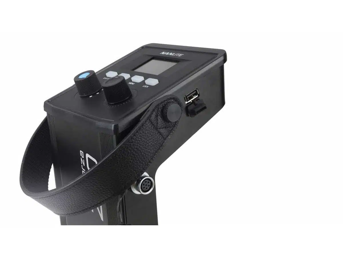 Optimoitu käytettäväksi studiossa tai lokaatiossa, Forza 200 voi toimia joko mukana toimitetun verkkolaitteen tai valinnaisen V-asennettavan akun kanssa. Tämän avulla voit käyttää valaisinta missä tahansa paikassa riippumatta virran saatavuudesta.