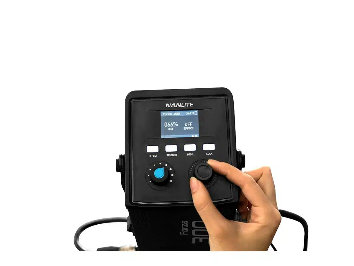 Matalan painopisteen ja ohjainten käsittelyn helppouden saavuttamiseksi Forza 300:n ohjainpaneeli, AC-adapteri ja akkukytkennät on yhdistetty yhteen etähallintayksikköön joka on helppo ripustaa mihin vain valojalustaan. Etähallintayksikkö on myös DMX-yhteyspiste, jonka ansiosta Forza 300 yhdistyy saumattomasti DMX-ohjattuun valaisujärjestelmään.