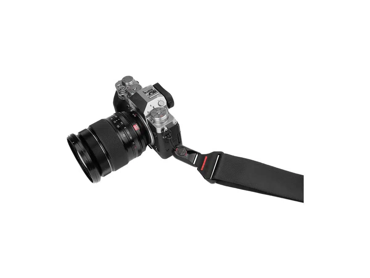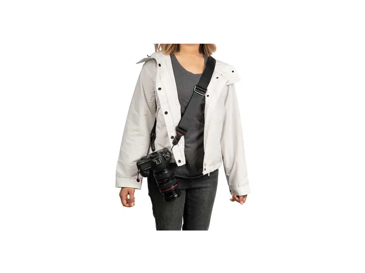 Monipuolinen ja kestävä hihna: käytä Slidea rintareppuna, kaula- tai olkahihnana. Se on mukava, mutta matalaprofiilinen sisäisesti pehmustetun nailonhihnan ansiosta. Toisella puolella hihna on sileä ja liukuu vaatteiden päällä