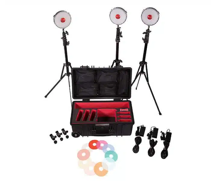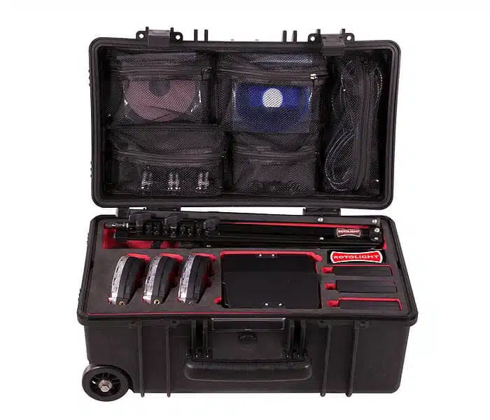 Rotolight NEO 3 light Kit sisältää Neo LED- valot, jotka tuovat ammattimaisen valaisun helposti ja edullisesti kaikkiin kuvauskohteisiin, kuten miljöökuvaukseen ja studioon. Mukana pakkauksessa 3 x NEO kuvausvaloa, 22 suodinta (diffuusio,ihonväri, magenta ja efektivärit), kompaktit valaisinjalustat, Hot-shoe adapterit kamerakäyttöön, 360º kuulanivelet ja virtalähteet valoille – Kaikki kätevästi pakattuna ruiskuvaletusta muovista tehtyyn jämäkkään salkkuun, jossa on renkaat ja vetokahva helppoon liikutteluun.
