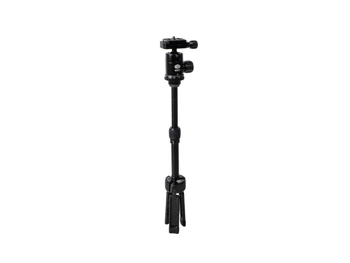 Sirui 3T-35K -pöytäjalusta sopii helposti kameralaukkuun, reppuun tai takataskuun. Vyökoukun ansiosta sen voi pitää aina valmiina. Jalusta on valmistettu taotusta lentokone-alumiiniseoksesta, joten se on erittäin kestävä. Leveät, vakaat jalat kestävät jopa neljän kilon painon. Kaksiosainen keskiputki nousee 34,4 cm asti! Voit käyttää jalustaa helposti myös yleisön yli kuvatessasi tai selfieiden ottamisen. Jalat taittuvat runkoa vasten säilytystä varten. Laadukas kuulapää on varustettu pikakiinnityslevyllä. Voit myös käyttää jalustaa ilman keskiputkea, päästäksesi lähemmäksi maanpintaa ja saadaksesi mahdollisimman tukevan jalustan.