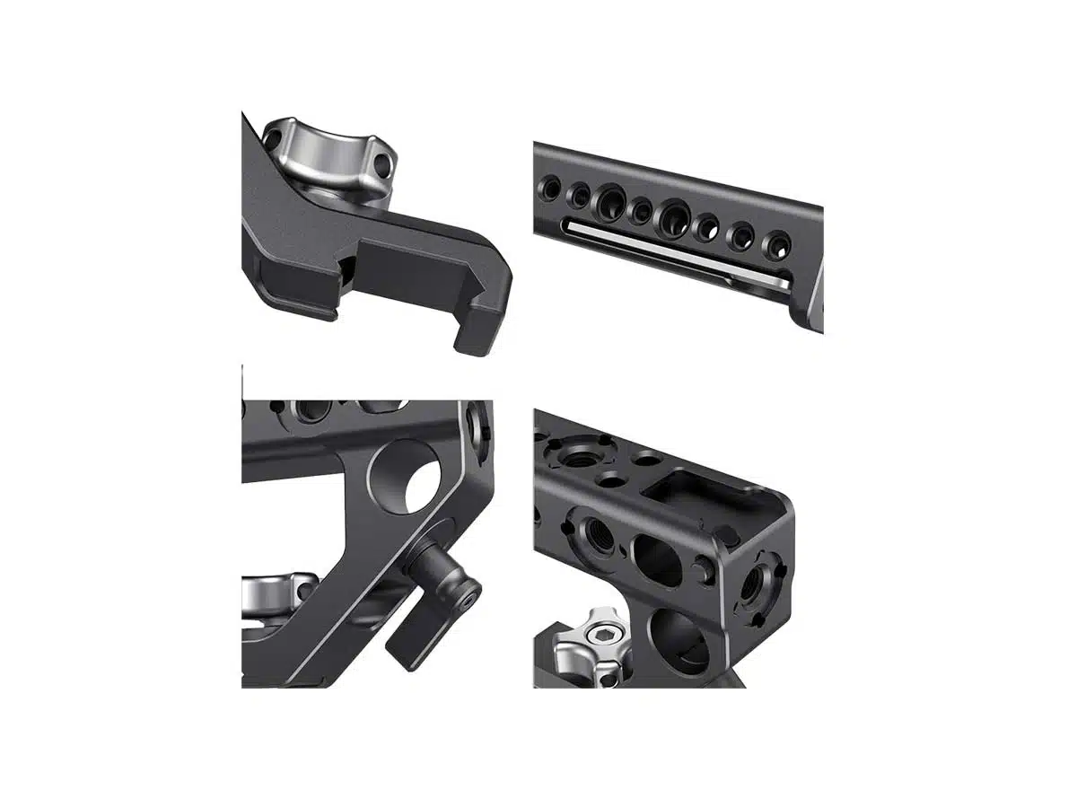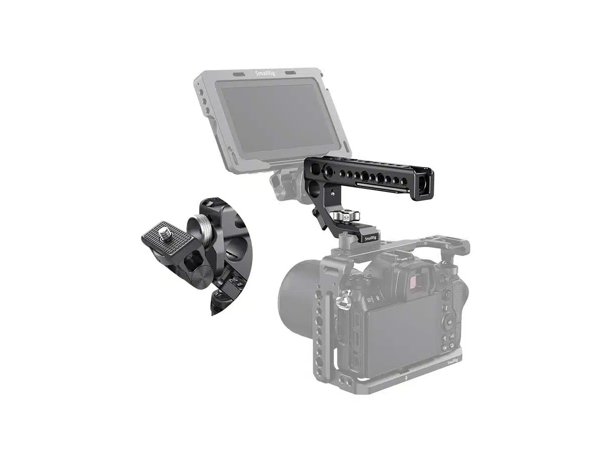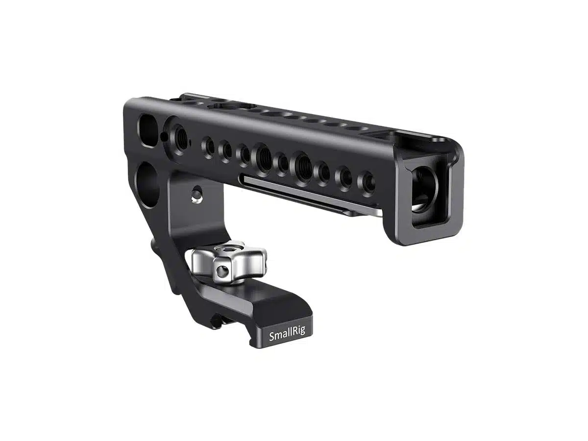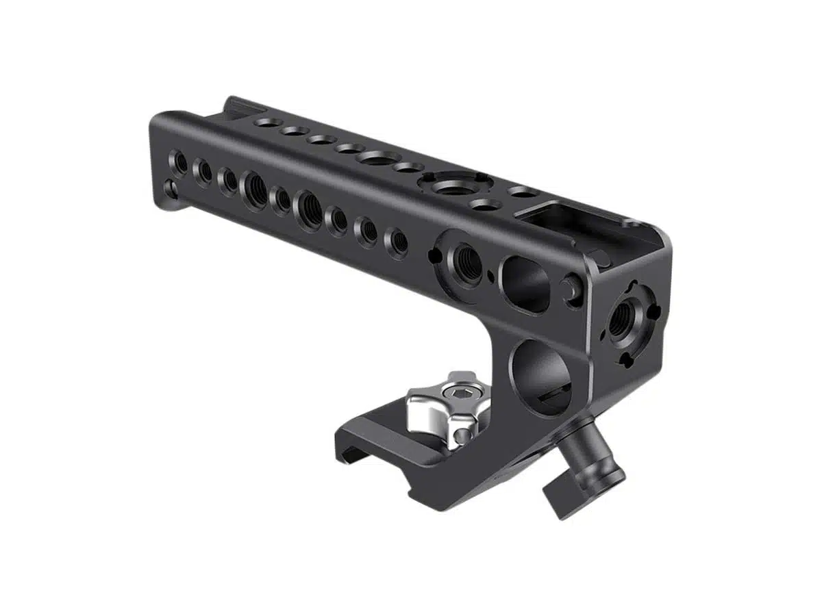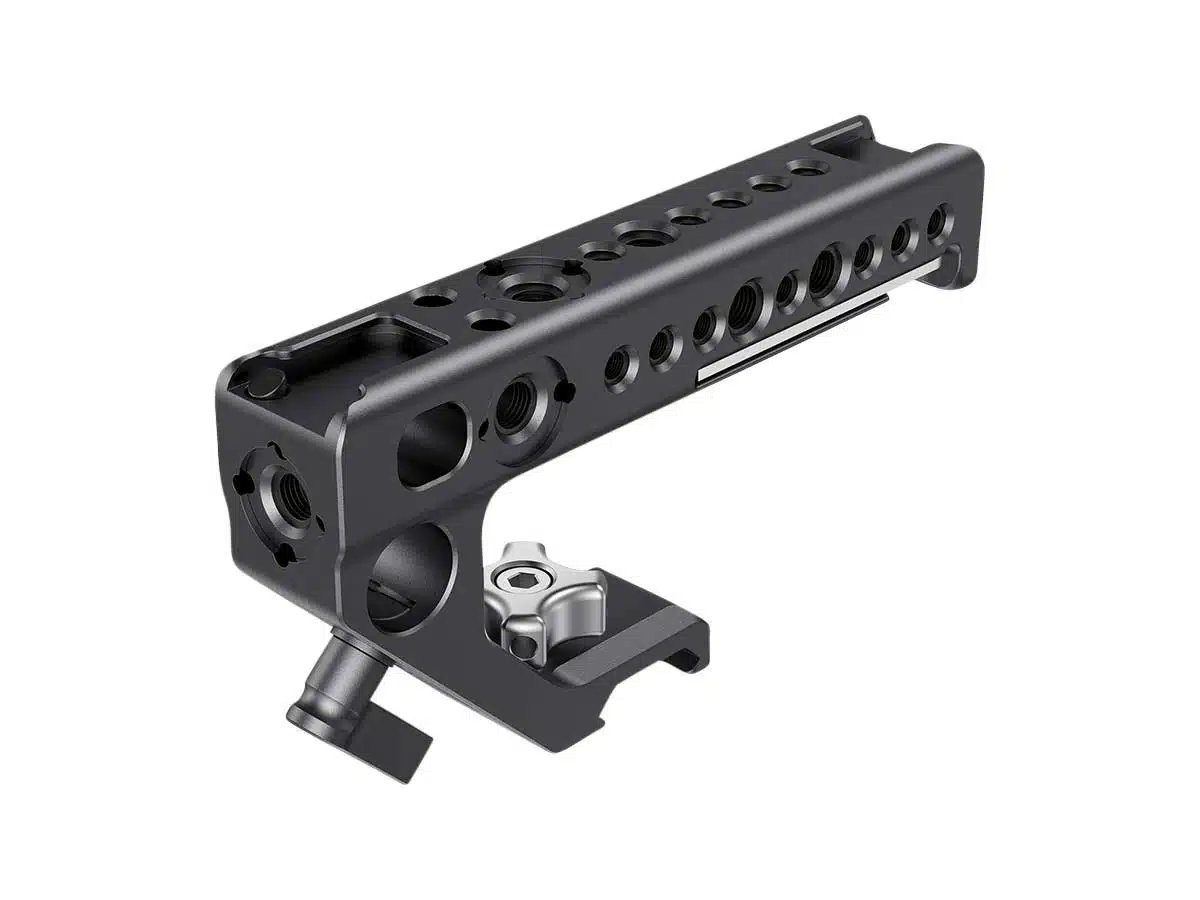 SmallRig 2439 Nato yläkahva on suunniteltu kiinnitettäväksi nopeasti tavalliseen NATO-kiskoon, jotta kamerasi saa tasapainoisen tartuntakohdan. Kahva voidaan kiinnittää mihin tahansa häkkiin tai ylälevyyn, jossa on NATO-kisko peukaloruuvin avulla. Useita 1/4″-20, 3/8″-16 ja Arri 3/8″-16 kierteitä toimitetaan lisätarvikkeille, kuten näyttökiinnike 2294 ja 2348. Kahva on integroitu kolmeen kylmäkenkäkiinnikkeeseen mahdollistaa Cold Shoe Monitor Mount 2346:n asennuksen. , joista yksi on suunniteltu irrotusta estävällä tapilla. Kahvassa on myös 15 mm:n sauvapuristin tankoyhteensopiville lisävarusteille. Lisäksi kahvassa on sisäänrakennettu kuusioavain, jonka avulla peukaloruuvi voidaan kiristää uudelleen turvallisuuden varmistamiseksi.