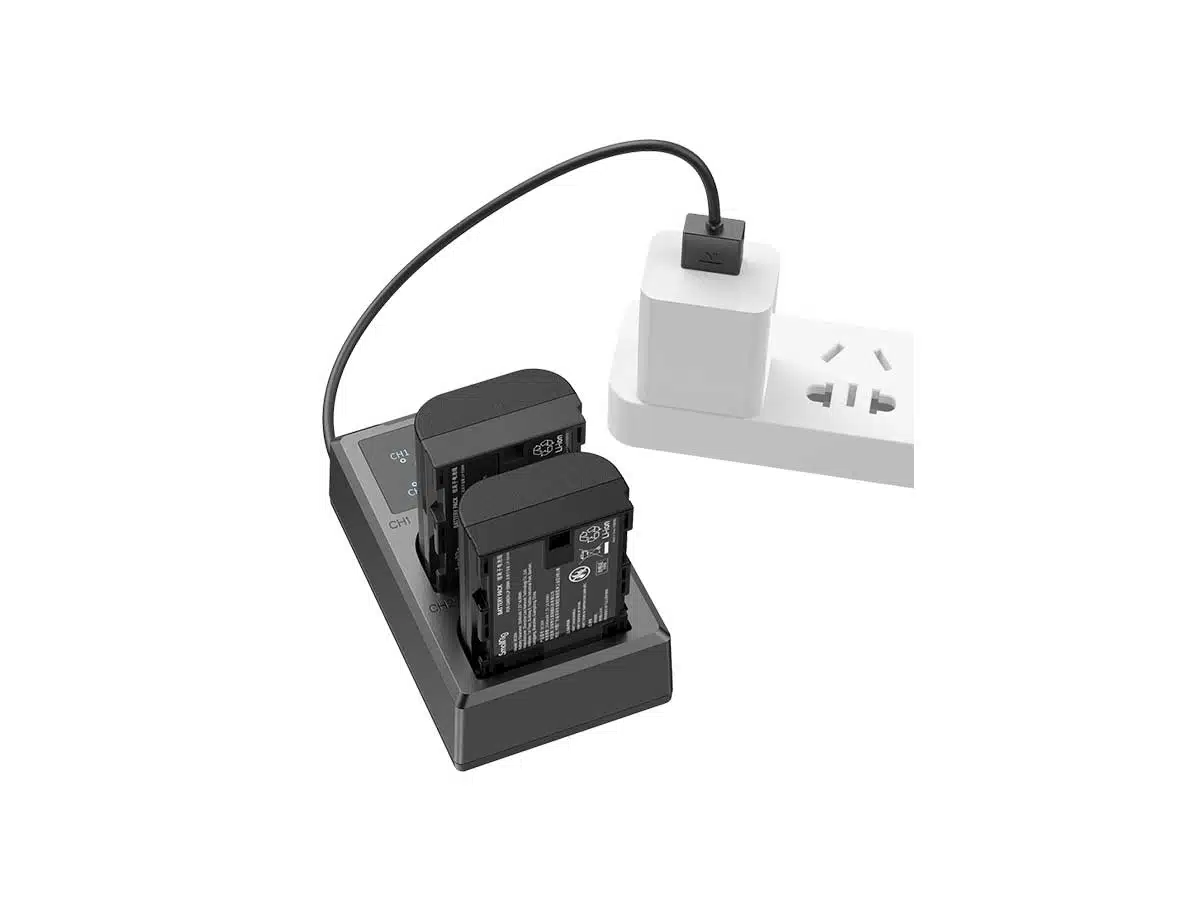 Smallrig 3821 sisältää kaksi Canon LP-E6NH yhteensopivaa tarvikeakkua ja kahden akun laturin. Laturipaketin lisäksi tarvitset ainoastaan verkkomuuntimen, eli samanlainen seinään tuleva virtaosa kuin seim. kännykän latureissa. Laturiin voi syöttää virtaa myös USB-C tai USB-A johdolla suoraan varavirtalähteestä. Erittäin näppärä ominaisuus kun seinäpistoketta ei ole lähistöllä. Parhaan latauskokemuksen saavuttamiseksi suositellaan virtalähdettä, jonka lähtöjännite on yli 5 V⎓2,1 A. Älä käytä kahta tuloliitäntää samanaikaisesti.