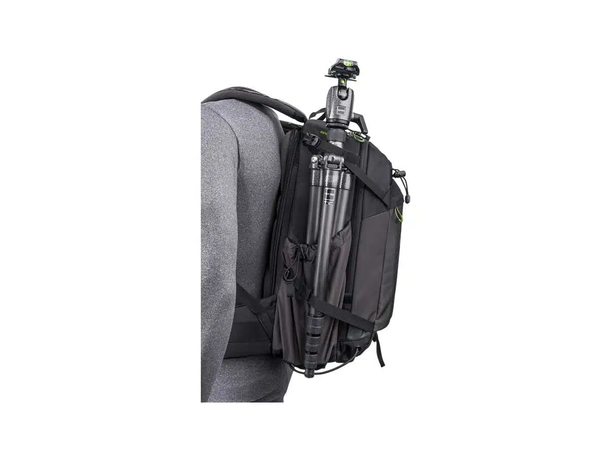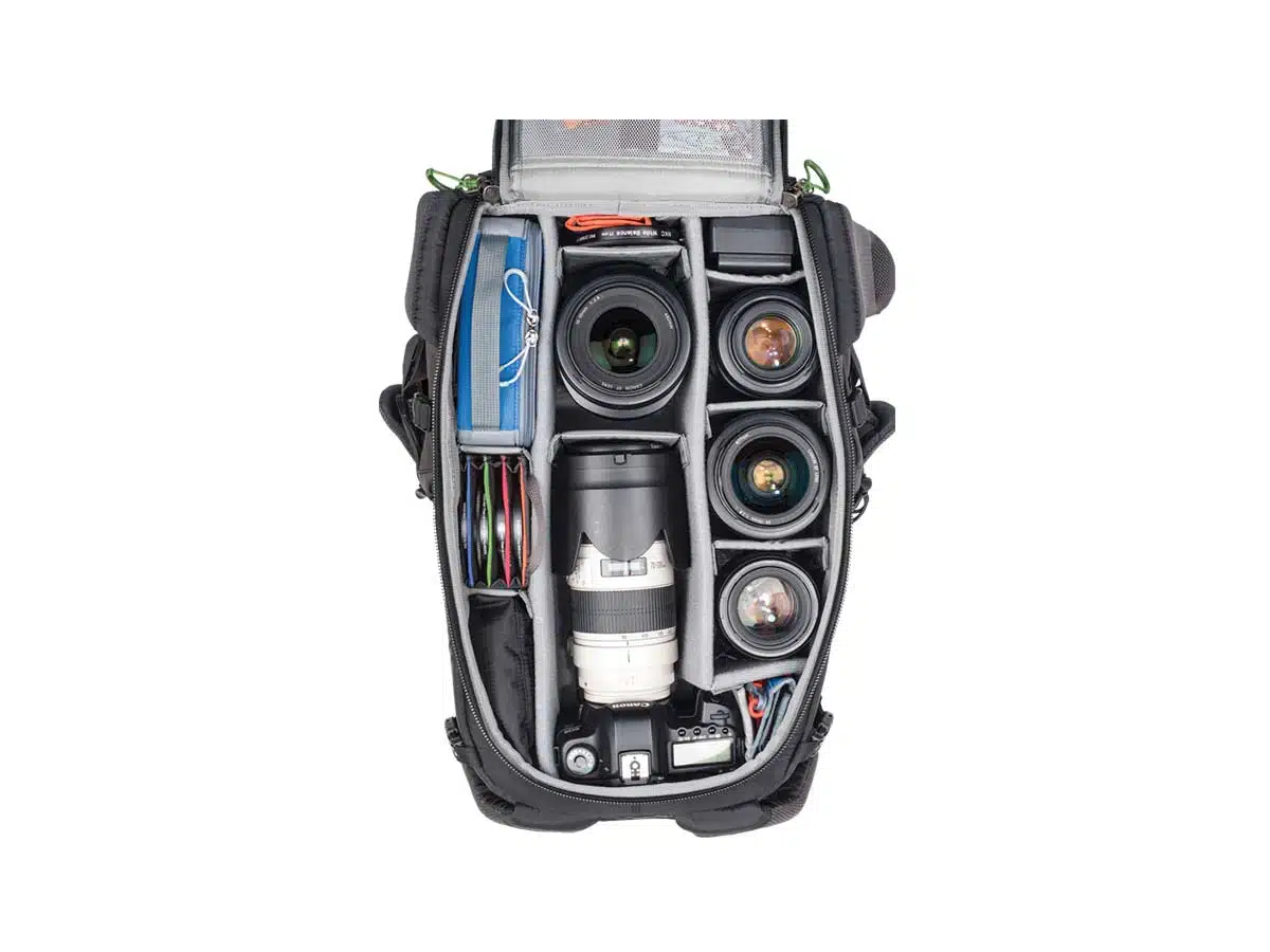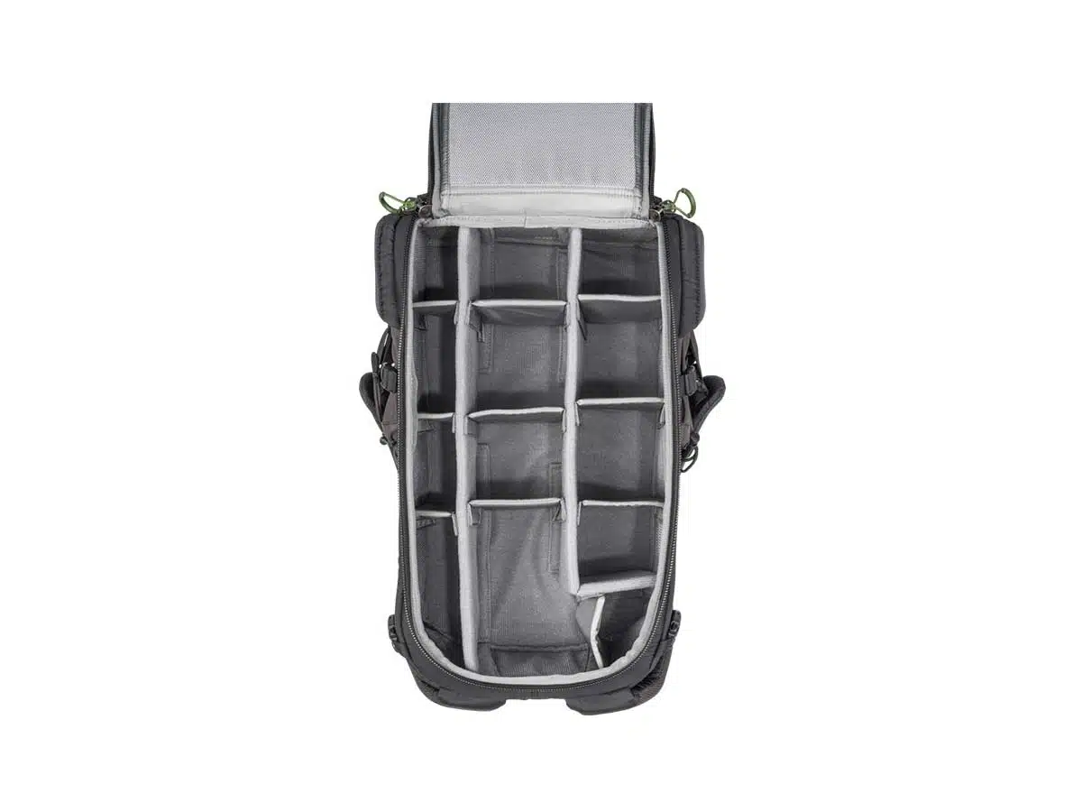 - Avautuva takapaneeli mahdollistaa pääsyn kaikkiin kameravarusteisiisi ilman repun riisumista, jolloin voit työskennellä repusta ilman, että valjaisiin tulee likaa, märkää, mutaa tai jäätä