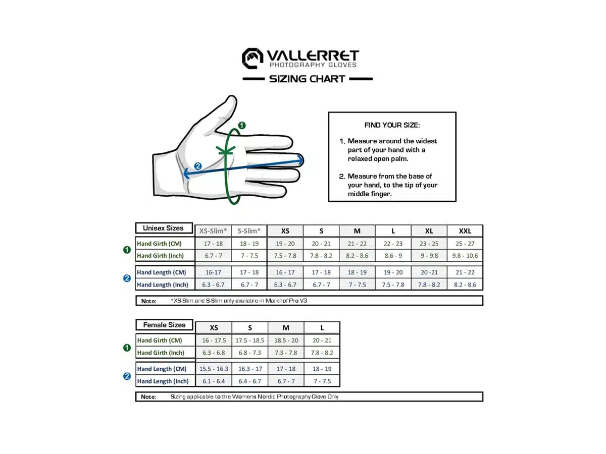 Poikkeus #2: Jos haluat käyttää vähemmän tyköistuvia hanskoja, voit valita suuremman koon jos aiot käyttää niitä aluskäsineiden kanssa. Emme kuitenkaan suosittele tätä, koska se voi vaikeuttaa hienomotorista näppäryyttä kameran kanssa toimiessa.