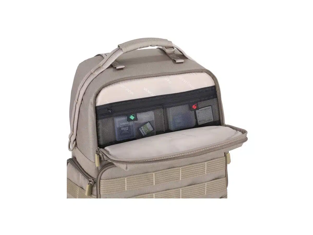 Erittäin monipuolisessa Vanguard VEO Range T48 BG NATO Tactical -repussa on sisustus, joka voidaan mukauttaa lähes mille tahansa järjestelmälle, joten se on ihanteellinen kumppani käytännössä kaikille – ei vain valokuvaajille. Lisäksi ulkoinen molle hihnakiinnitysjärjestelmä voidaan konfiguroida kiinnittämään melkein mikä tahansa tavara matkaasi varten. Repun ulkopinnan lenkkien avulla pystyt kiinnittämään paljon lisävarusteita reppuun. Repun mukana tulevat jalustatasku ja juomapullo tasku, joiden paikkaa voit helposti vaihdella.