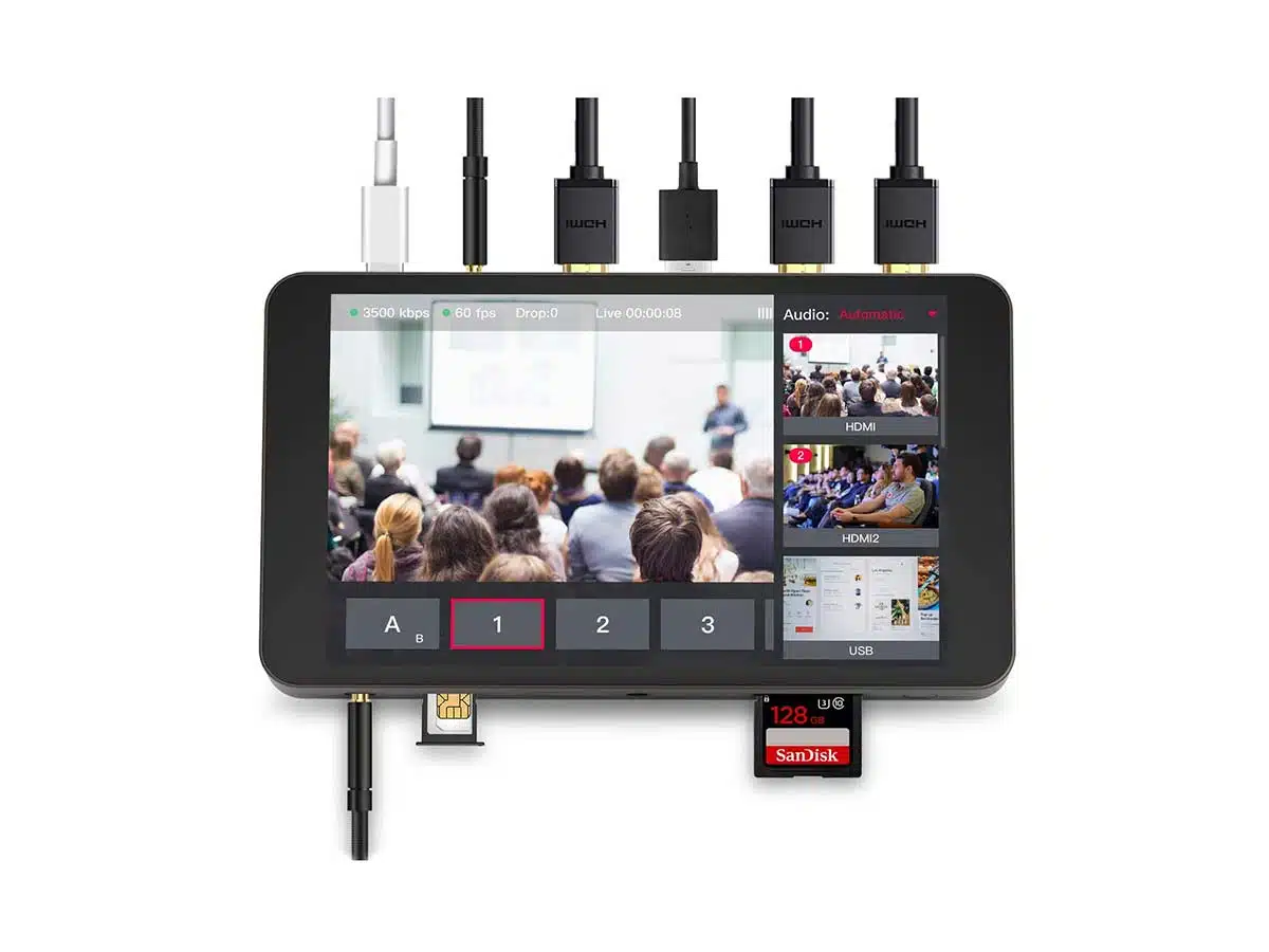 YoloBox on enkooderi, vaihtaja, monitori ja tallennin yhdessä paketissa. Se on kannettava monikamera suoratoistolaite, joka voi lähettää jopa kolmelle alustalle samanaikaisesti.