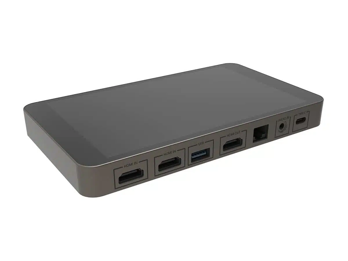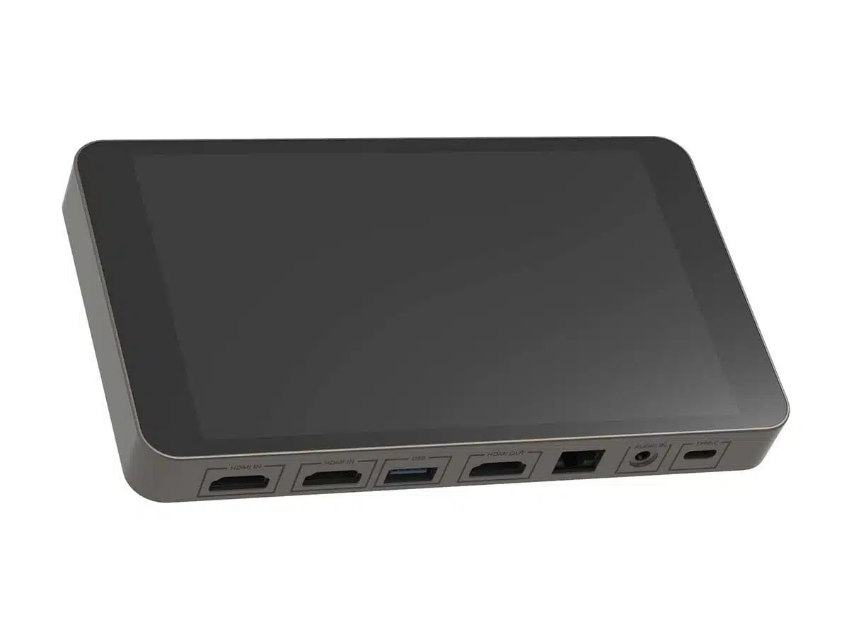 Kaikkea hallitaan helposti 7 tuumaiselta kosketusnäytöltä, joka toimii myös monitorina. Suuri kosketusnäyttö näyttää ulostulevan suoratoistokuvan sekä muut sisääntulevat kuvat. LCD-näyttö näyttää myös käyttöliittymän, jonka avulla voit vaihtaa tietolähteiden välillä yksinkertaisella kosketuksella.