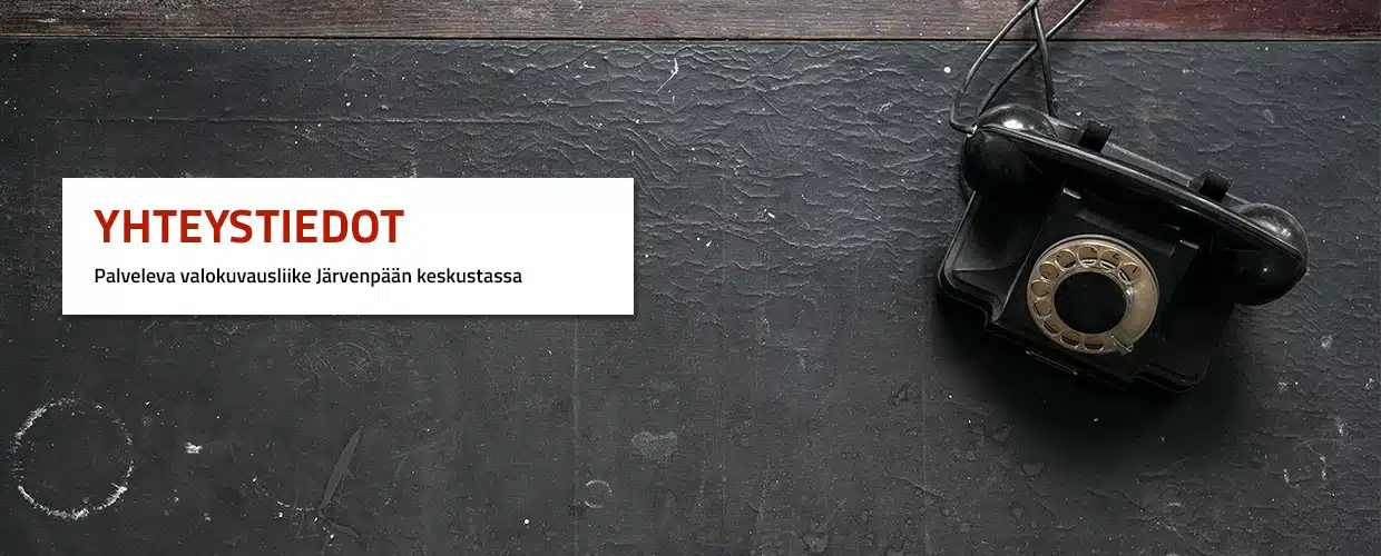 Valokuvausliikkeemme sijaitsee Järvenpään keskustassa Prisma-keskuksen pääsisäänkäyntiä vastapäätä. Prisman Hesburgerista kun katsoo ulos, näkyy myymälämme suoraan vastapäätä olevan talon päädyssä.